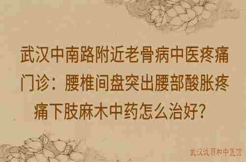 武汉中南路附近老骨病中医疼痛门诊:腰椎间盘突出腰部酸胀疼痛下肢麻木中药怎么治好?临症不少中老年人腰椎间盘突出多见于劳累后,初起多见腰部痠胀疼痛,不少人经过治疗后症状有所缓解,但仍反复发作,遇劳加重。后有的因弯腰负重后上述症状复作并加重,多见有:腰部痠胀疼痛,下肢麻木,或失眠,纳一般,舌淡胖,苔厚,脉弦。中医认为中老年人年老体衰,肝肾不足,骨弱筋弛,若平素劳累耗伤气血,宗筋失养,不能约束关节,故出现腰椎间盘突出。腰椎间盘突出则骨骼关节不利,稍一劳作即气血运行不畅,故发作腰部酸胀疼痛,劳累后加重。宗筋即经筋,从四肢末端走向头身,多结聚于关节骨骼附近,故常伴有下肢麻木。因疼痛影响睡眠,故见失眠。