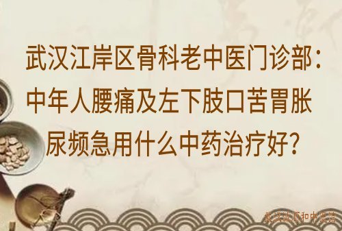 武汉江岸区骨科老中医门诊部:中年人腰痛及左下肢口苦胃胀尿频急用什么中药治疗好?中年人腰腿痛多见于肝肾不足的人群中,初起多无明显诱因出现腰痛,连及左下肢,初起不少人服用止痛药后缓解。后多因家务操劳等腰痛加重。多见:腰痛,连及左下肢,晨起口苦,胃胀,身困,纳欠佳,眠差,尿频尿急,大便秘结,2-3日一行,舌淡苔白,脉沉。中医认为这些中年人脏腑渐衰,肝肾不足,气血渐亏,气虚无力行血,血行迟滞,不通则痛,故而腰痛连及左下肢。肝肾不足,气血耗伤,周身不荣,故见身困乏力。肾虚失摄,膀胱失约,故见尿频尿急。气虚不运,中焦气机郁滞不畅,故见胃胀、纳欠佳、大便秘结等症。郁久化热,火热上炎,故见口苦。肝肾亏虚,气血不足,心神失养,故见眠差。