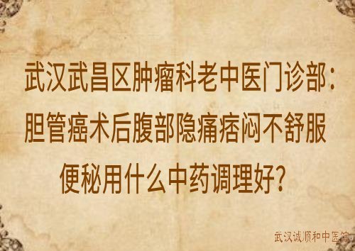 武汉武昌区肿瘤科老中医门诊部:胆管癌术后腹部隐痛痞闷不舒服便秘用什么中药调理好?胆管癌术后腹部隐痛,不少见有按之柔软,伴痞闷不舒,往往查全腹CT未见明显异常,自行口服止痛药乏效,多身困,纳欠,或大便秘结,舌淡暗苔白,脉沉。中医认为胆管癌术后脾络受损,久而脾阴失布,大腹失养,故见腹痛隐隐。脾机失运,中焦气滞,故见痞闷不舒。中焦脾胃斡旋失司,胃不受纳,则气血生化乏源,气虚推动乏力,故纳欠、身困。脾阴不足,肠腑失濡,故大便秘结。